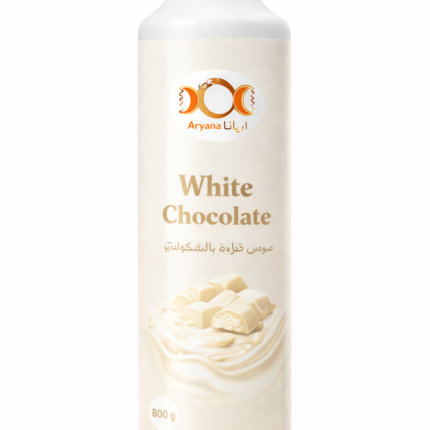 صوص شوكولاتة بيضاء ناعم بحلاوة حليبية غنية — مثالي للسكب وتزيين مختلف أنواع الحلويات.